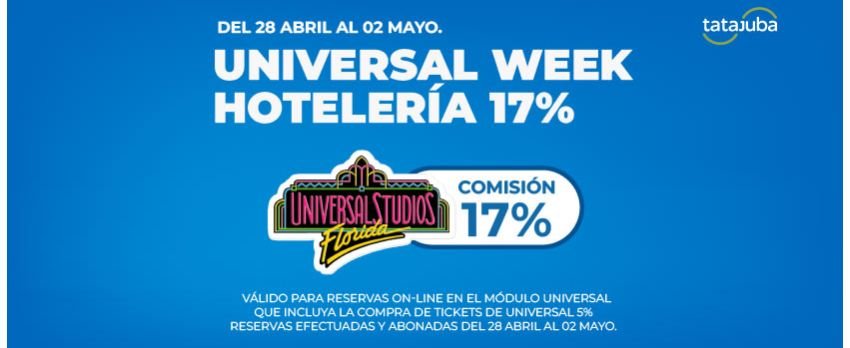 Del 28 de abril al 2 de mayo, obtené un 17% de comisión en hotelería reservando online en el módulo Universal de Tatajuba Travel.