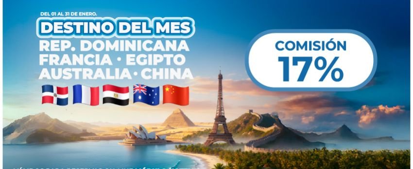 🎉DESTINO DEL MES ENERO Rep. Dominicana, Francia, Egipto, Australia, China.