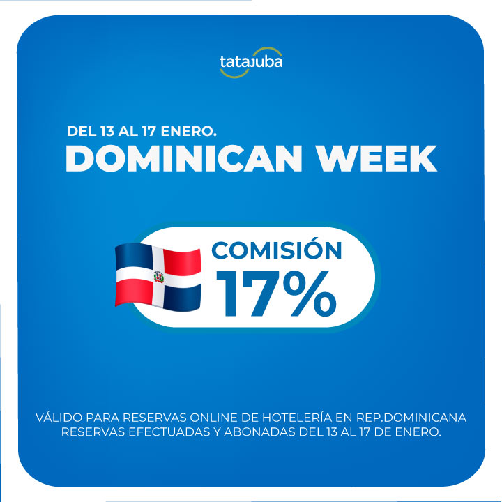 ¡DOMINICAN WEEK!Comenzá a planear con más ganancia. Del 14 al 18 de julio, accedé a una comisión especial del 17% en reservas online realizadas en el módulo Hoteles y abonadas dentro del período promocional. |